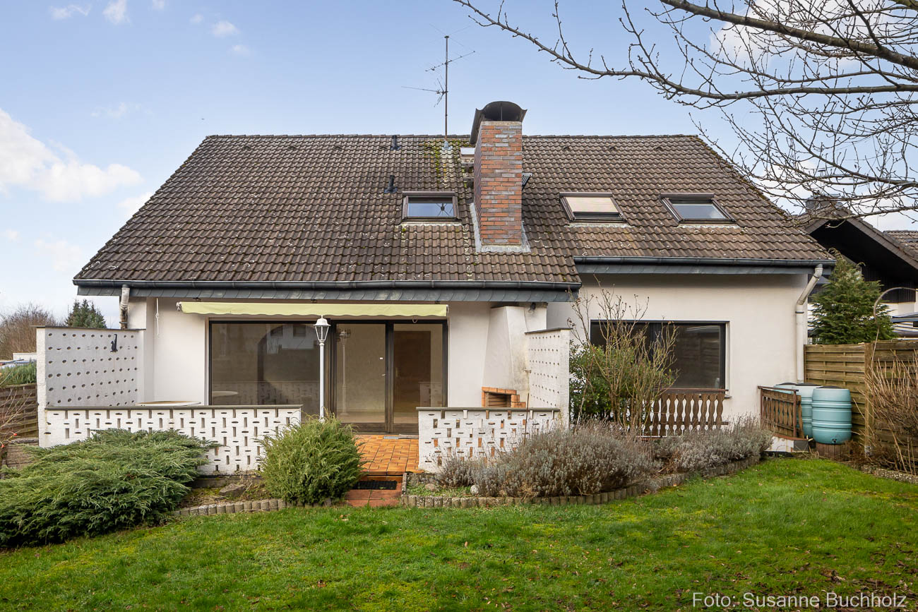 Über den Wohnbereich erschließt sich die Terrasse mit einem ansprechend gestalteten Außenkamin, der den pflegeleichten Garten in mediterranem Flair ergänzt. Ein weiteres Highlight im Erdgeschoss bildet das großzügige Schlafzimmer zur Gartenseite, welches über einen separaten Flur Zugang zu einem klassisch gehaltenen Badezimmer aus dem ursprünglichen Baujahr bietet.