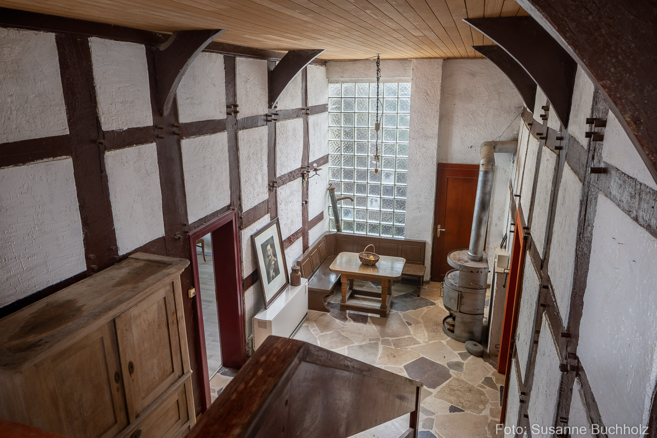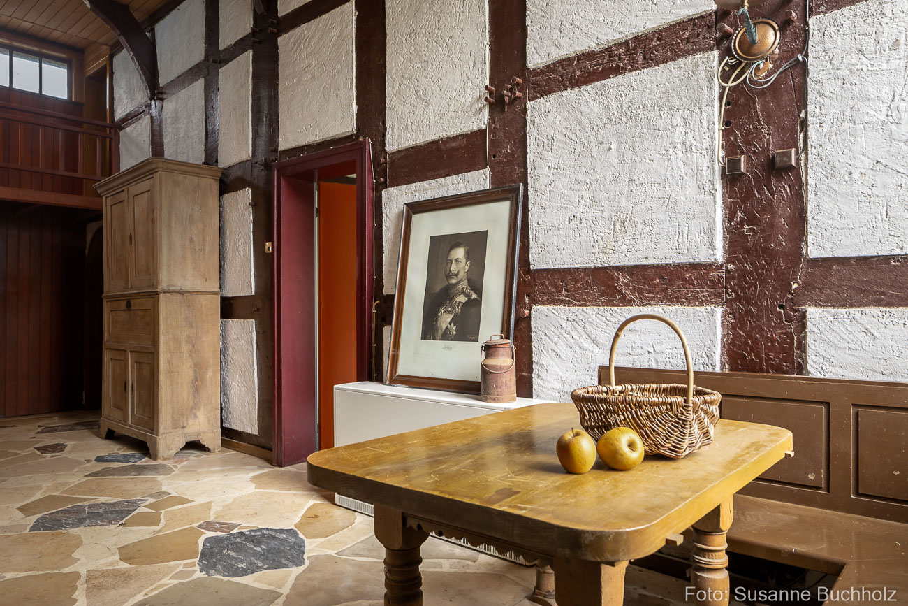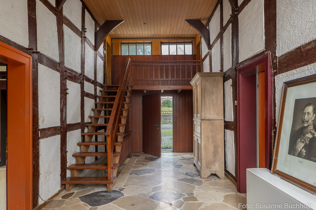 Deele mit Empore: Das Herzstück des Hauses ist die geräumige Deele mit einer beeindruckenden Empore, die einen offenen und einladenden Charakter schafft.
