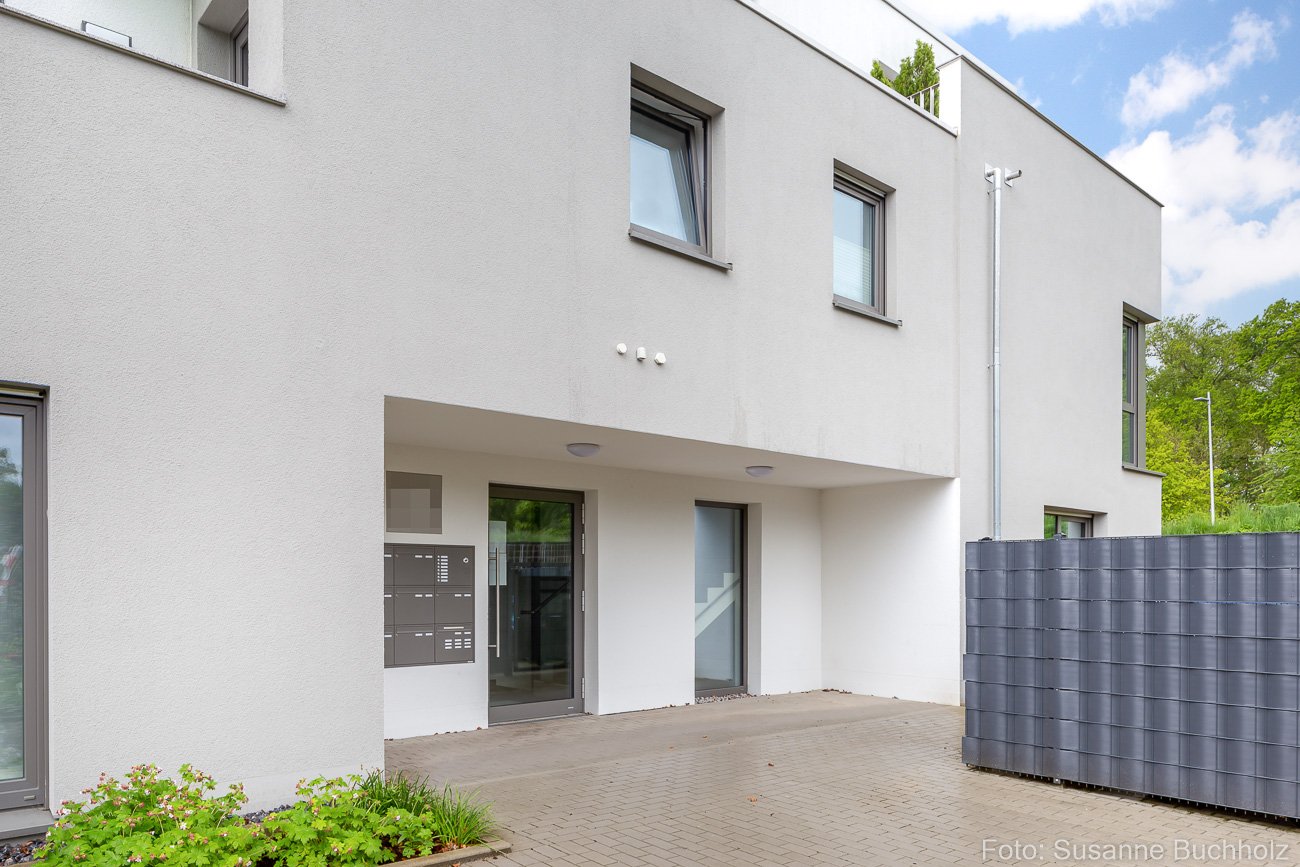 Über das ansprechende Treppenhaus gelangt man über einen Laubengang zu der wunderschönen Wohnung in der 1. Etage.