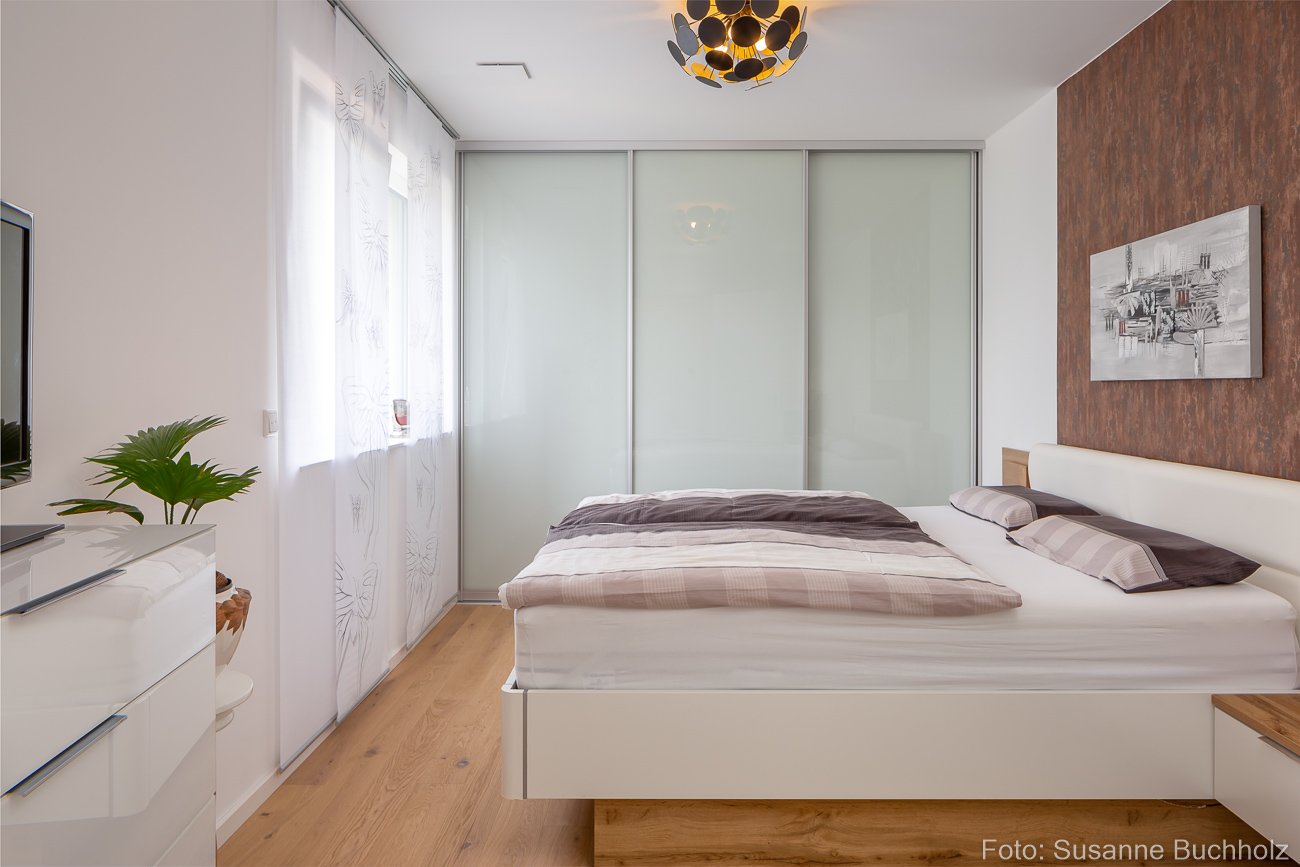 Das zweite Schlafzimmer ist östlich ausgerichtet und bietet daher ein ebenso erholsames Schlafklima.